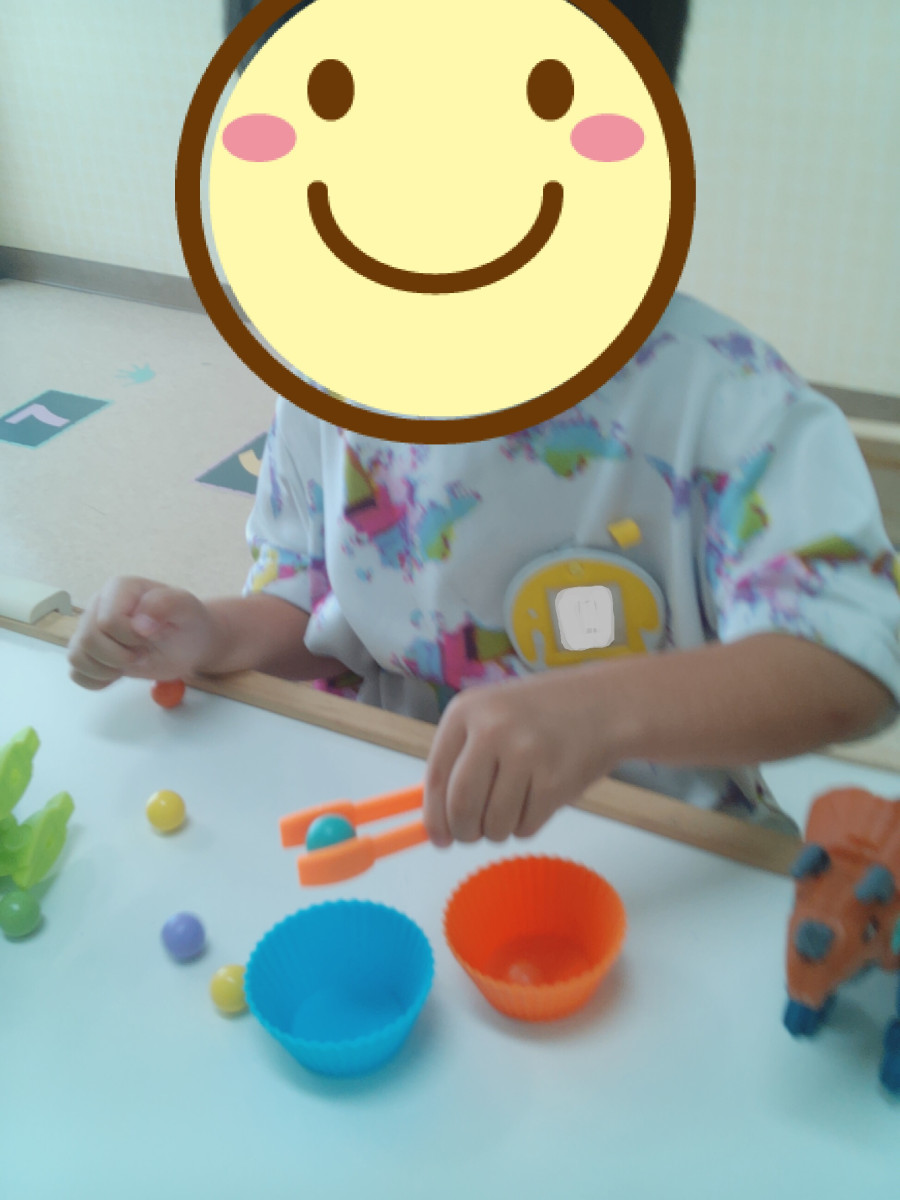 今後は、更に小さいボールなどにレベルアップしつつ、”えんぴつ”や”おはし”を持つ練習をおこなっていきます。