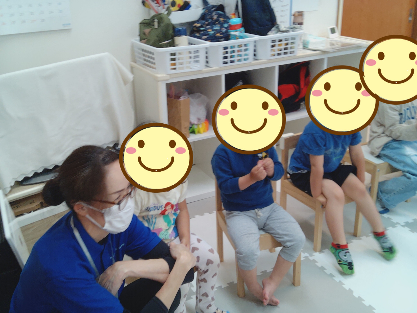 昔は、ウロウロ、床にゴロンとなったりしていたお子さまも今は椅子に座って待てるようになりました。