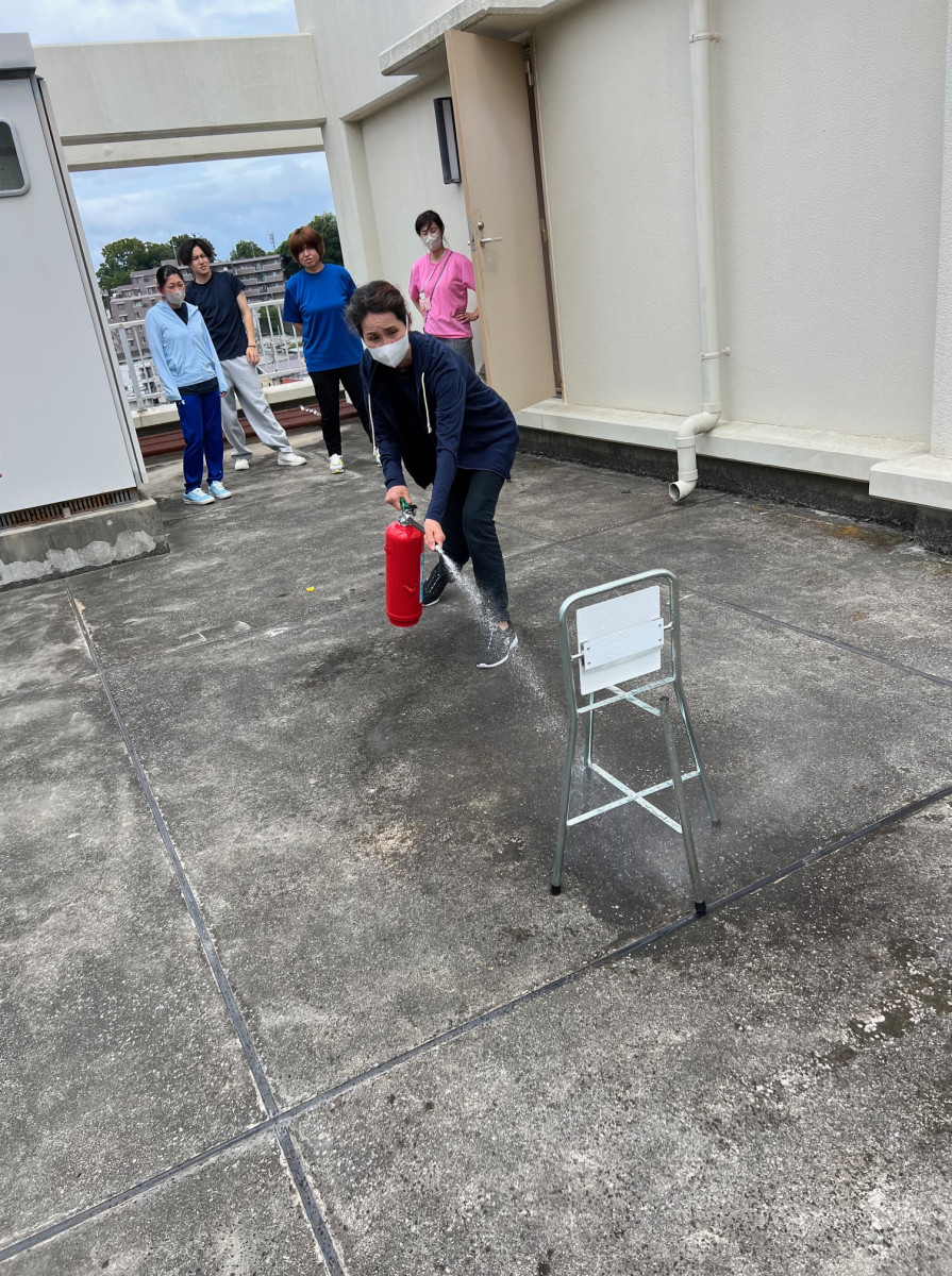 ビル全体の消防訓練にあわせて、教室独自の訓練も実施しました
